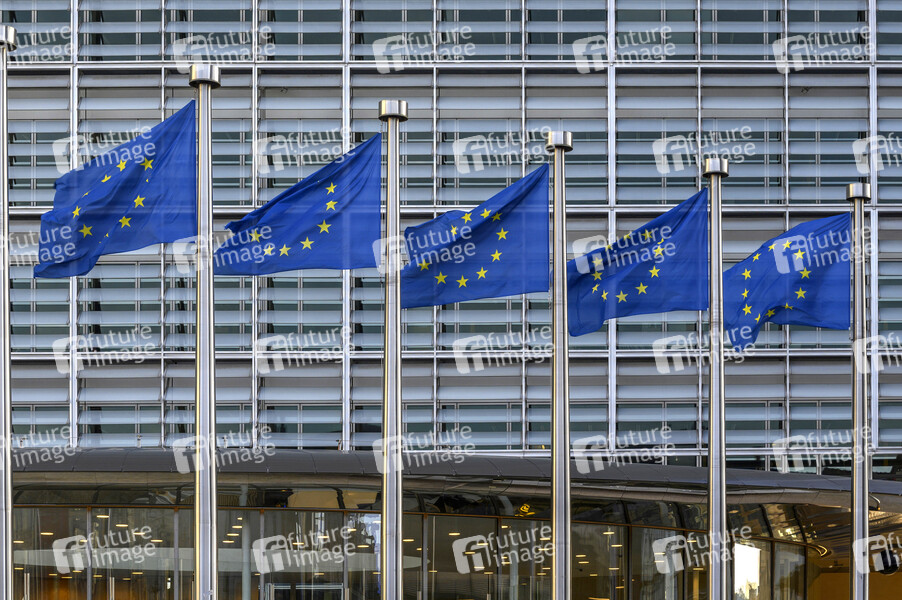 Europaviertel, EK, Architektur, EU-Kommission, supranationales Organ der Europäischen Union, Einhaltung des Europarechts durch die EU-Mitgliedstaaten, Europäische Union, Teil des politischen Systems der EU, Europäische Kommission, Fahne, Flagge, Fahnen, Flaggen