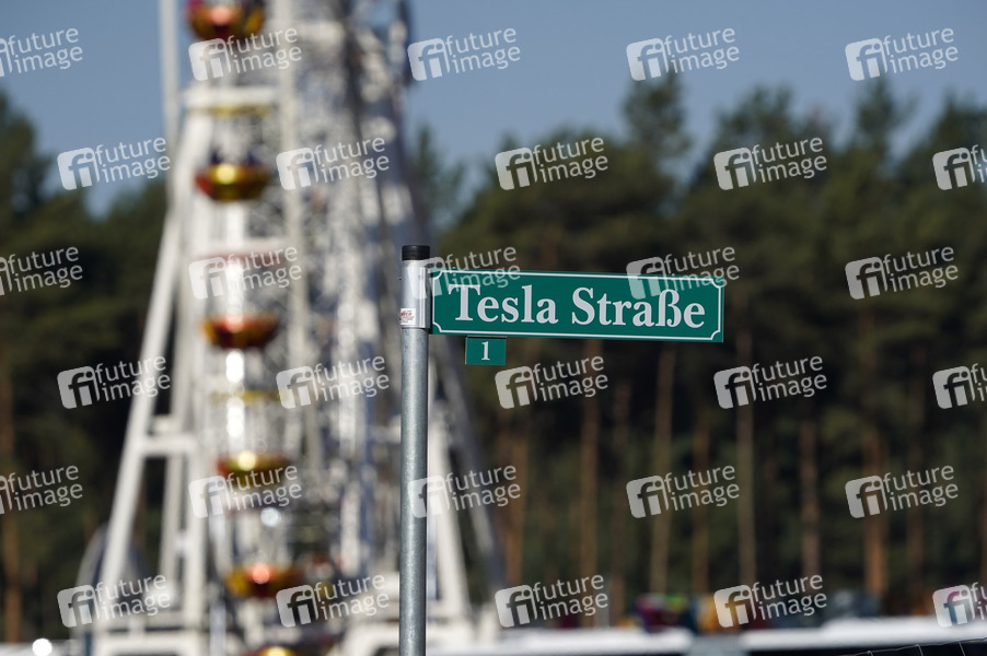 Riesenrad, Tesla Fest, Fest, Jahrmarkt, County Fair, US-Autobauer Tesla, News, Nachrichten, Tesla, Elektroauto, Elektrofahrzeuge, PKW, Auto, Model Y, Model 3, Großfabrik, Automobilhersteller, Autobauer, Elektromobilität, umweltfreundlich, vorläufige Genehmigung, Batteriefabrik, Großprojekt, Investition, Baugenehmigung, Vorab-Genehmigung, E-Auto-Fabrik, Umwelt, Klimaschutz, Baustelle, Bauen, Baubranche, Bau-Branche, Bauarbeiten, Großbaustelle, Bagger, Kran, Kräne, Baustelle, Batterie-Fabrik