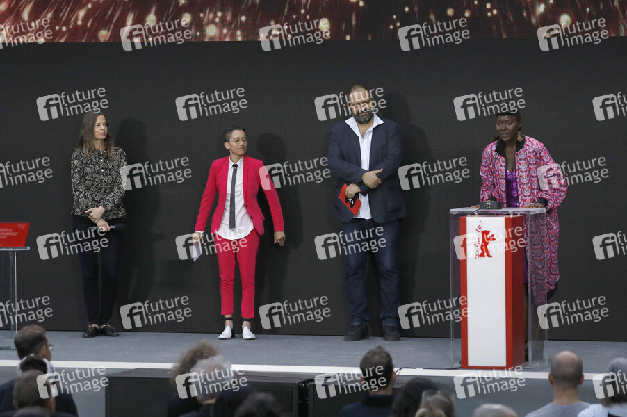 Alice Diop mit dem Preis für den besten Dokumentarfilm 'Nous' mit Janna Ji Wonders, Albertina Carri und Orwa Nyrabia bei der Preisverleihung der Berlinale Summer Special 2021 / 71. Internationale Filmfestspiele Berlin im Freiluftkino Museumsinsel. Berlin, 13.06.2021