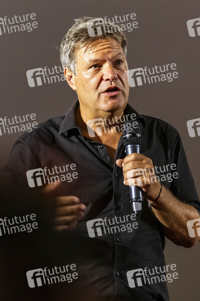 Robert Habeck bei einer Wahlkampfveranstaltung von Bündnis 90/Die Grünen zur Landtagswahl in Sachsen im Cineplex Rundkino. Dresden, 30.08.2024