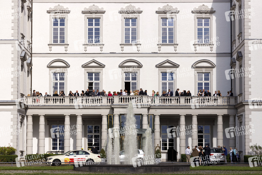 Geladene Gäste auf dem Balkon des Schlosshotels bei der Gala und den Awards zu den Fine Food Days Cologne 2021 im Schlosshotel Bensberg. Bensberg, 22.08.2021