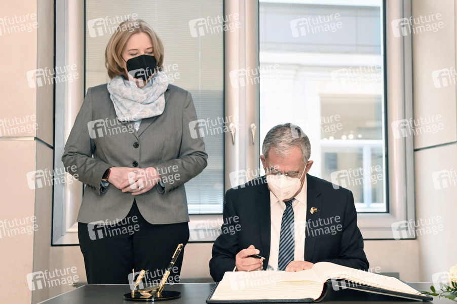 Bärbel Bas und Mickey Levy beim Empfang des Präsidenten der Knesset des Staates Israel und dem Eintrag in das Gästebuch des Bundestages im Reichstagsgebäude. Berlin, 25.01.2022