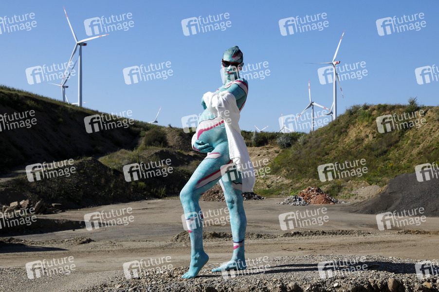 Bodyart: Schwangerschaft Splash Performance mit Model Christina in einem Sandabbaugebiet. Coppenbrügge, 22.09.2024 - BodyArt-Künstler: Jörg Düsterwald
