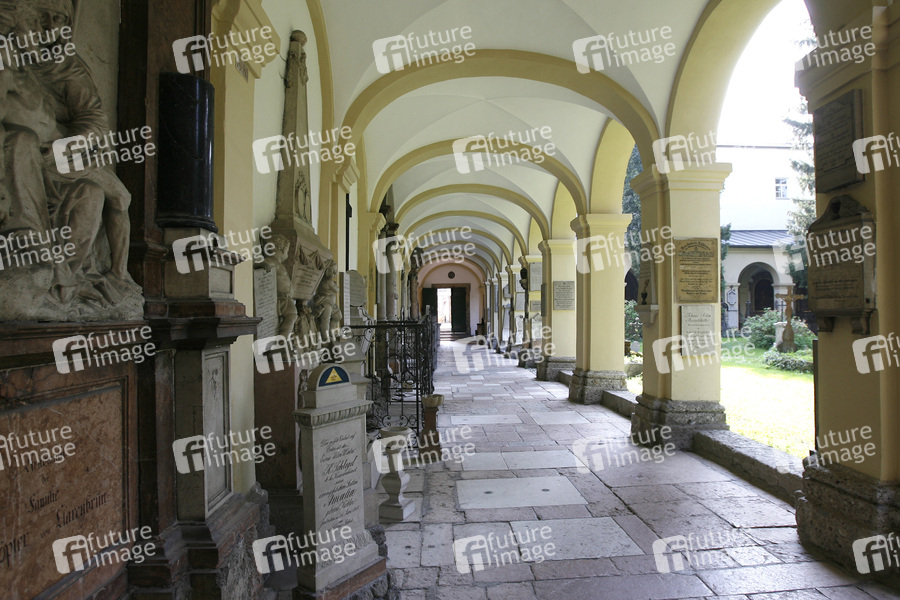 Friedhof St. Sebastian, Baumeister Andrea Bertoleto, errichtet zwischen 1595 und 1600, Grabsteine, Grabkreuze