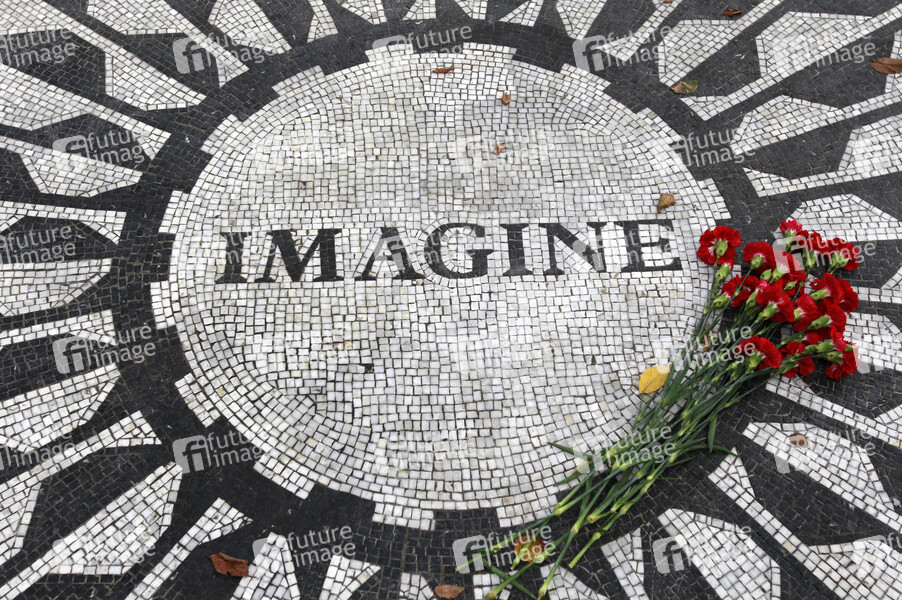 kleiner Bereich im Central Park, gestaltet von Yoko Ono, gewidmet John Lennon, Einweihung 9. Oktober 1985, Mosaik aus schwarzen und weißen Steinchen