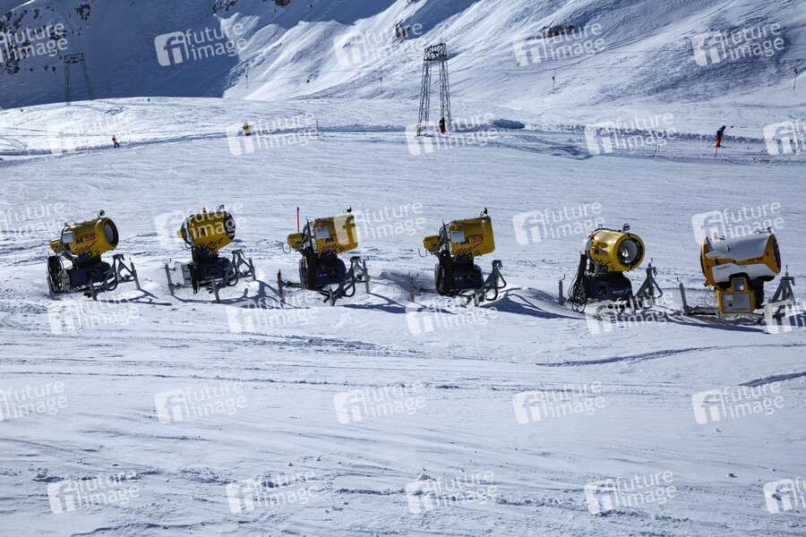 Schneekanonen im Hochgebirge. Davos, 03.03.2020