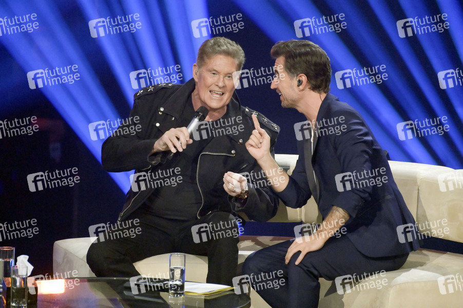 David Hasselhoff und Florian Silbereisen bei der Aufzeichnung der TV Show 'Zum allerletzten Mal: Der grosse Schlagerabschied!' im Studio 3 der Media City. Leipzig, 22.10.2022