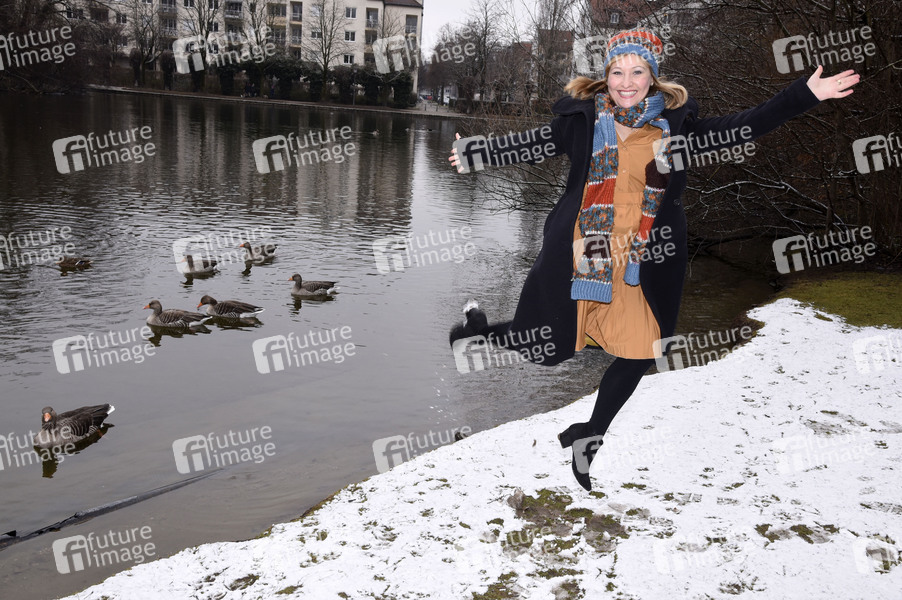 Prominenz, Celebrity, Celebrities, exklusives Fotoshooting, Photoshooting, Fototermin, Unterhaltung, Entertainment, Winter, Schnee, Enten, Ente, Gans, Gänse, Schauspielerin