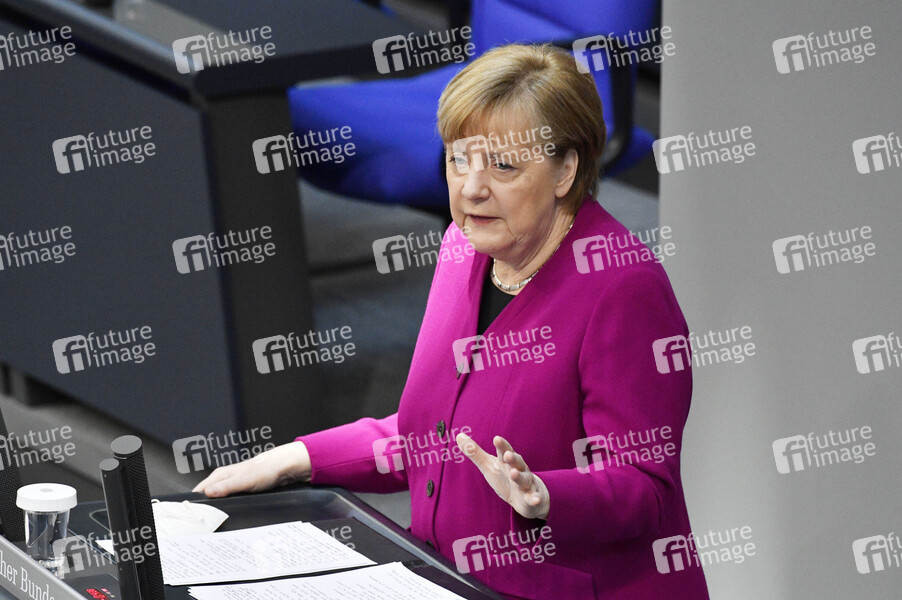 Angela Merkel in der 218. Sitzung des Deutschen Bundestages im Reichstagsgebäude. Berlin, 25.03.2021