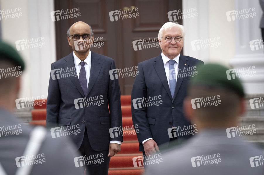 Tharman Shanmugaratnam und Frank-Walter Steinmeier beim Empfang des Präsidenten von Singapur mit militärischen Ehren im Schloss Bellevue. Berlin, 04.06.2025