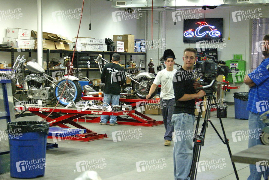 OCC-Mechaniker, Werkstatt, TV-Team, Dreharbeiten