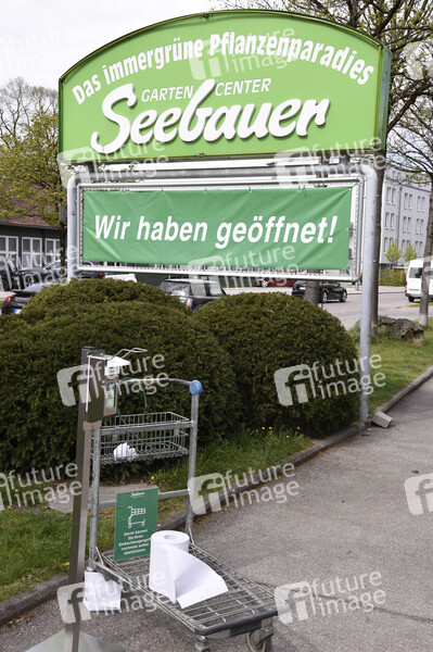Öffnung der Gartencenter und Baumärkte nach der Lockerung der Corona-Maßnahmen in Bayern, hier das Gartencenter Seebauer. München, 20.04.2020