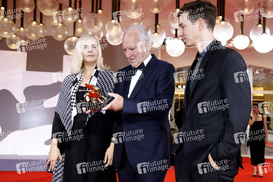 Werner Herzog mit Ehefrau Lena Herzog und Sohn Simon Herzog und dem Goldenen Löwen für sein Lebenswerk auf der Biennale di Venezia 2025 / 82. Internationale Filmfestspiele von Venedig im Palazzo del Cinema. Venedig, 27.08.2025