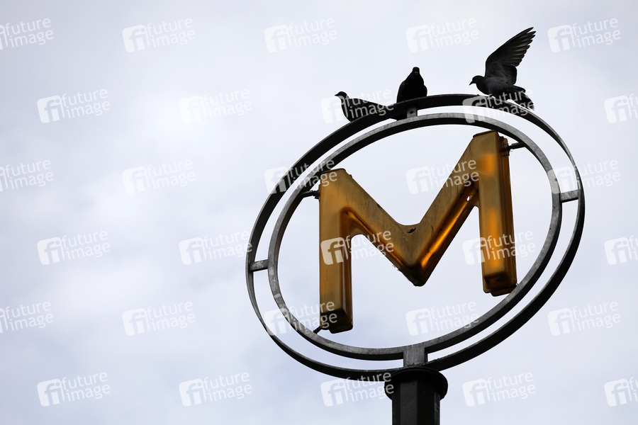Métro Paris, Massentransportsystem, Nahverkehr, Pariser Bahn, U-Bahn-Haltestelle, Metro-Logo, U-Bahn, Eingang, Schild, Reise, Urlaub, Sightseeing, Kultur, Sehenswürdigkeit, Tourismus, Frankreich