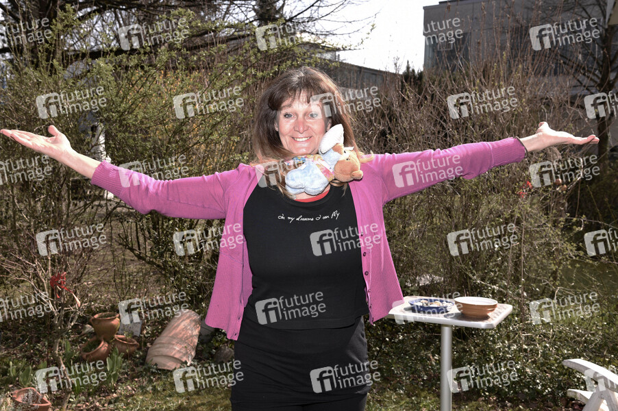 Barbara Weinzierl bei einem exklusiven Fototermin mit und ohne Gesichtsmaske in ihrer Wohnung und im Garten während der Coronakrise. München, 03.04.2020