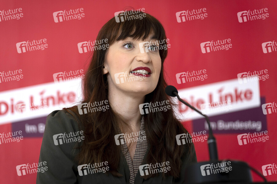 Politik, Statement, Pressekonferenz, PK, Reichstag, Deutscher Bundestag, Demokratie, Parlament, Parlamentsgebäude, Volksvertreter, MdB, Mitglied des Bundestages, Abgeordnete, Politikerin, Vorsitzende der Fraktion Die Linke