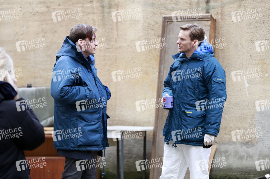 Alexander Finkenwirth und Jan Dose bei den Dreharbeiten zum Fernsehfilm 'Wolfsland - Kein Entkommen' am Set am Sechsstädteplatz. Görlitz, 08.11.2019