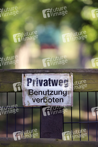 Ein Schild 'Privatweg - Benutzung verboten' hängt an einem Tor an einem Gehöft bei Köln. (Themenbild, Symbolbild) Köln, 14.06.2021