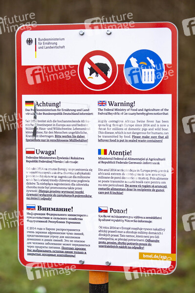 Müllentsorgung: Das Bundesministerium für Ernährung und Landwirtschaft informiert mit Warnschildern auf Autobahnparkplätzen an der A5 über die Schweinepest. (Symbolbild, Themenbild) Weinheim, 04.01.2021