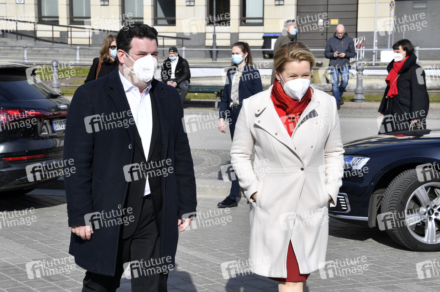 Hubertus Heil und Franziska Giffey bei der DGB-Aktion zum Equal Pay Day vor dem Brandenburger Tor. Berlin, 10.03.2021