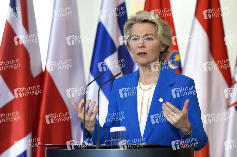 Ursula von der Leyen bei der Pressekonferenz zum 10. Gipfel des Berlin-Prozesses zum Westbalkan im Bundeskanzleramt. Berlin, 14.10.2024