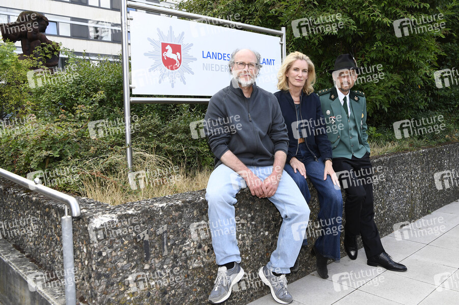 Stephan Krohmer Maria Furtwängler und Volker Bruch beim Fototermin am Set des ARD-Krimis 'Tatort - Schützenfest' (AT) vor dem LKA Niedersachsen am Waterlooplatz. Hannover, 09.07.2025