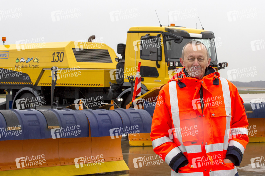 Johan Vanneste beim Presse-Fototermin zum Winter-Fuhrpark des Flughafens Köln Bonn Airport. Köln, 11.12.2019