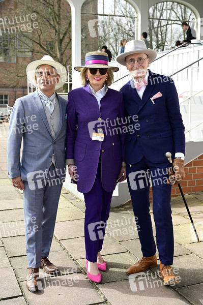 Carlos Eduardo Davila Federico, Tini Gräfin von Rothkirch und Günther Krabbenhöft bei der Großen Saisoneröffnung 2024 auf der Rennbahn Hoppegarten. Berlin, 31.03.2024