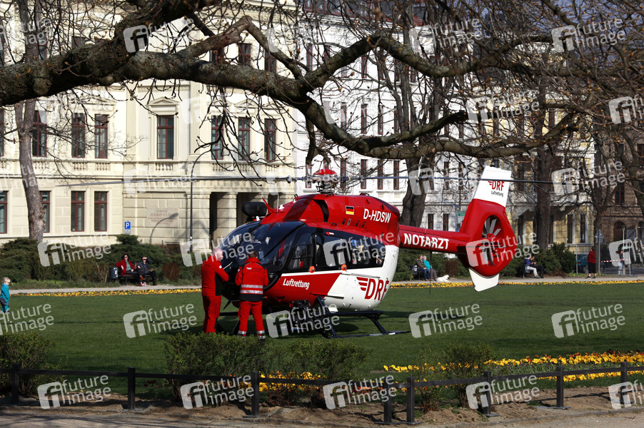 Ein Hubschrauber der DRF Luftrettung landet auf dem Wilhelmsplatz. Görlitz, 28.03.2020