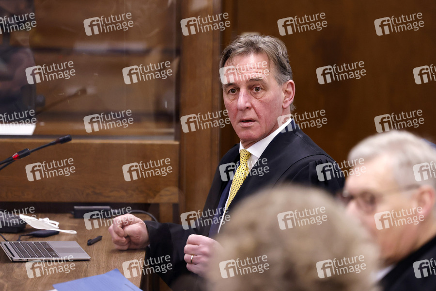 Rechtsanwalt Andreas Kerkhof, Verteidiger des Angeklagten Thomas Drach, bei dessen Strafprozess vor dem Kölner Landgericht. Der 61-jährige frühere Reemtsma-Entführer Drach soll vier Geldtransporter in Köln, Frankfurt am Main und Limburg überfallen haben. Die Anklage lautet unter anderem auf versuchten Mord und besonders schweren Raub. Der Prozess findet unter aufwendigen Sicherheitsvorkehrungen statt. Köln, 07.02.2022