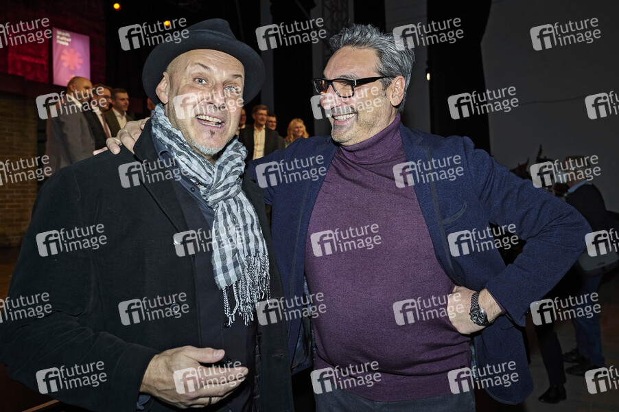Thorsten Wingenfelder und Mousse T. bei der Verleihung des Stadtkulturpreises 2022 durch den Freundeskreis Hannover an Fury in the Slaughterhouse in der Orangerie Herrenhausen. Hannover, 29.12.2022