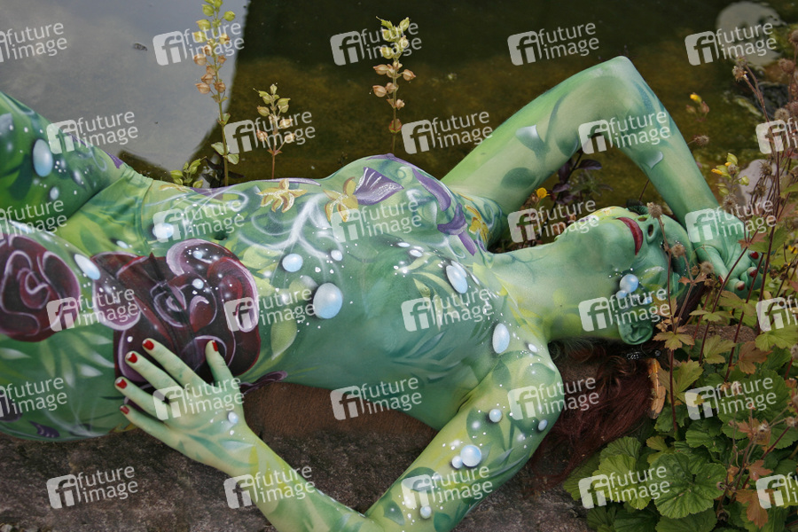 Bodypainting, Erotik, Frau, nackt, draußen, weiblich, Teich, woman, nude, outdoor, female, erotic, pond