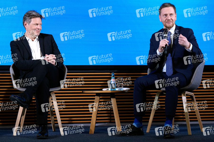 Politik, Politiker, Gespräch, Transformation, Wirtschaft, Wirtschaftsstandort, Bundeswirtschaftsministerium, Vizekanzler, Bundesminister für Wirtschaft und Klimaschutz, Bündnis 90/Die Grünen, Ministerpräsident des Freistaats Sachsen, CDU