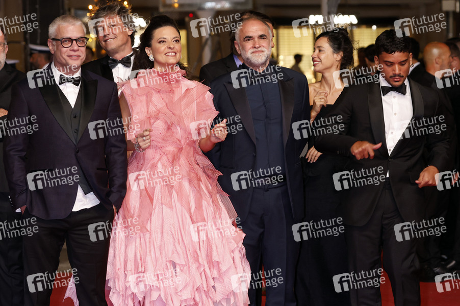 Fabio Assuncao, Nataly Rocha, Karim Ainouz und Iago Xavier bei der Premiere des Kinofilms 'Motel Destino' auf dem Festival de Cannes 2024 / 77. Internationale Filmfestspiele von Cannes im Palais des Festivals. Cannes, 22.05.2024
