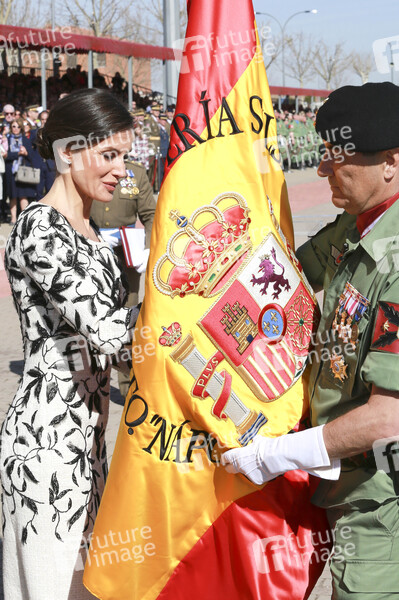 Königin Letizia von Spanien bei der Flaggenzeremonie der Fallschirmjägerbrigade Almogávares auf der Princip Base. Paracuellos de Jarama, 23.02.2019