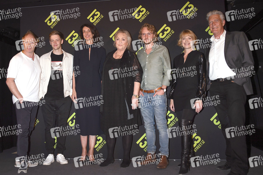 Simon Schwarz, Timur Bartels, Katharina Behrends, Doris Kunstmann, Michael Podogil, Elke Winkens und Max Moor bei der Premiere der 13th Street TV-Serie 'Prost Mortem - Die letzte Runde' im Rationaltheater. München, 16.09.2019