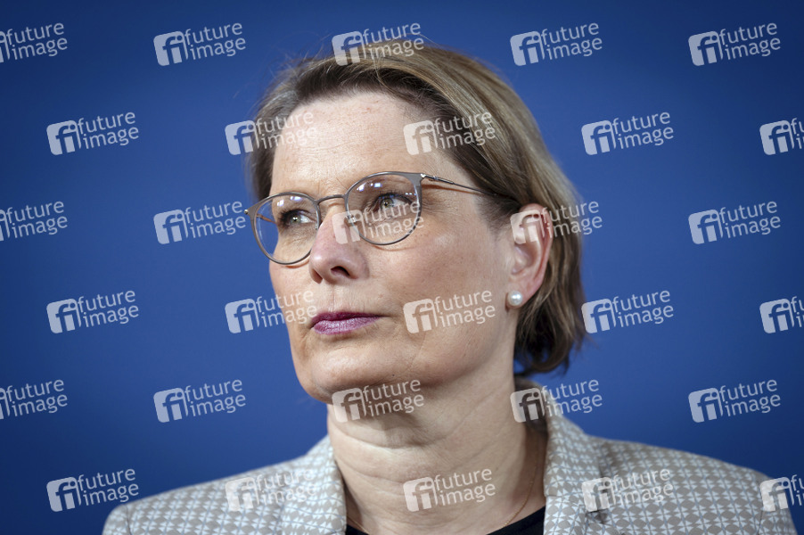 Stefanie Hubig bei der Pressekonferenz zur Vorstellung des Aktionsplans gegen Organisierte Kriminalität im Zollfahndungsamt Berlin-Brandenburg. Berlin, 25.02.2026