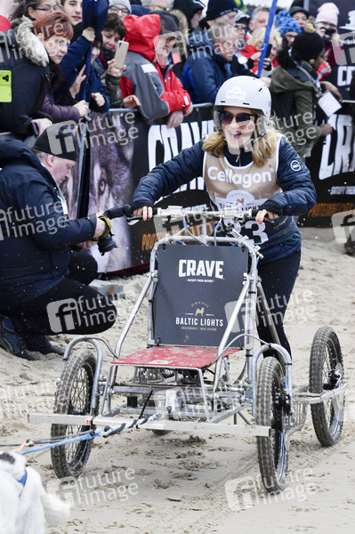 Schauspielerin, Moderatorin, Prominenz, Celebrity, Celebrities, Tier, Hund, Hunde, Huskys, Husky, Unterhaltung, Entertainment, Schlittenhunderennen, Ostsee, Sport, Charity, Benefiz