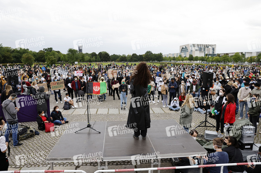 Demonstranten bei der Kundgebung unter dem Motto 'Luftbrücke jetzt! Schafft sichere Fluchtwege aus Afghanistan!' auf dem Platz der Republik. Berlin, 17.08.2021