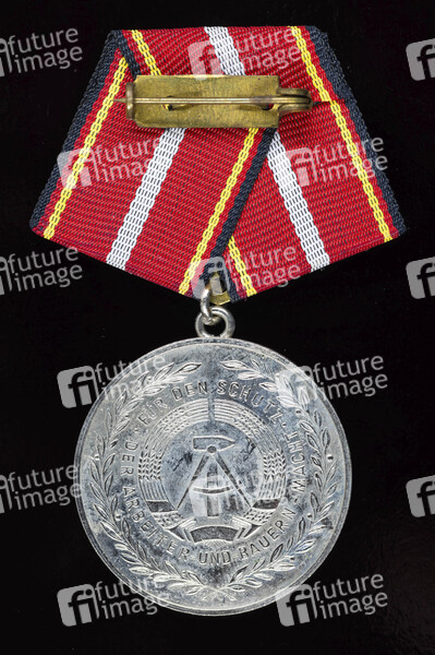 DDR Verdienstmedaille der Nationalen Volksarmee - Orden und Ehrenzeichen sind Auszeichnungen in Form tragbarer Abzeichen, die von staatlichen oder staatlich autorisierten Stellen als Belohnung für geleistete Dienste oder vorbildliches Verhalten verliehen werden, sowie um sich die Loyalität der auszuzeichnenden Person zu sichern. (Symbolfoto, Thememfoto)