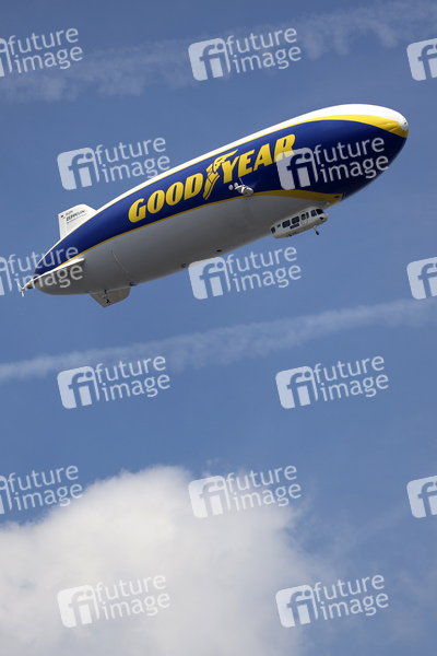 Blimp, Flugerlaubnis, Goodyear Blimp, Goodyear Logo, Goodyear Zeppelin, Goodyear-Zeppelin, Luftbilder, Luftperspektive, Luftraum, Luftschiff, Luftschiffe, Reifenhersteller, Symbolbild, Symbolfoto