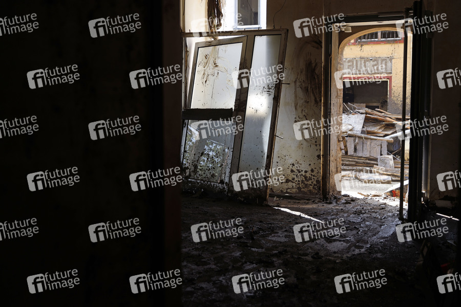 Nach dem Jahrhunderthochwasser in der Eifel durch heftige Regenfälle und Dauerregen mit Überschwemmungen und Überflutungen haben die Aufräumarbeiten im Ahrtal begonnen. Einheiten von Polizei, THW, Bundeswehr und Feuerwehr mitsamt vielen freiwilligen Helfern räumen Straßen, entfernen Schutt und Schlamm und versorgen die Menschen. Im Bild zerstörte Häuser in der Ortschaft Altenahr, in der die Flut viele Häuser zerstörte, 22.07.2021