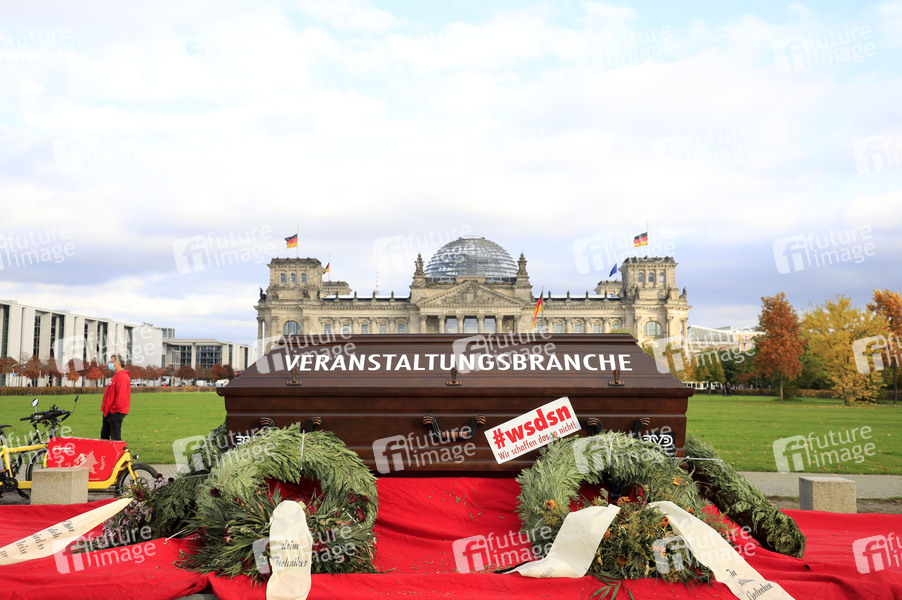 Großdemonstration, Veranstaltungsbranche, Unterhaltungsbranche, Aktion, Demo, Demonstration, Protest, Aktion, Notlage, finanzielle Not, Corona, Sars-CoV-2, Covid-19, Coronavirus, Coronaviren, Corona-Virus, Coronakrise, Corona-Krise, Corona-Pandemie, Coronamaßnahmen, Corona-Schutz, Ausnahmesituation, Einnahmeverluste, Veranstaltungsregelungen, Nachbesserungen der Veranstaltungsregelungen, Wirtschaft, wirtschaftliche Folgen der Pandemie, Wirtschaftspolitik, Politik, Reichstag, Reichstagsgebäude, Sitz des Deutschen Bundestages