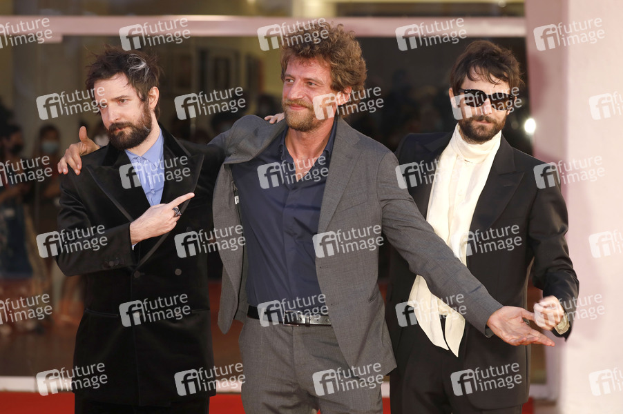 Fabio D’Innocenzo, Maurizio Lastrico und Damiano D’Innocenzo bei der Premiere des Kinofilms 'America Latina' auf der Biennale di Venezia 2021 / 78. Internationale Filmfestspiele von Venedig im Palazzo del Cinema. Venedig, 09.09.2021