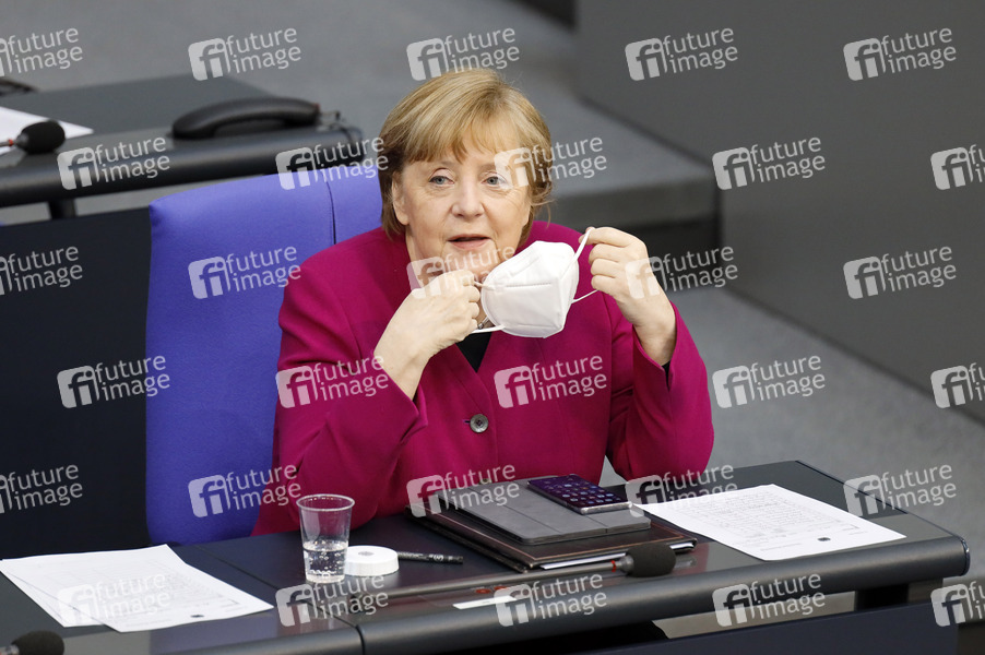 Angela Merkel in der 218. Sitzung des Deutschen Bundestages im Reichstagsgebäude. Berlin, 25.03.2021