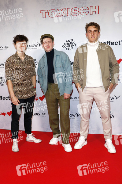 Tom Böttcher, Lennart Betzgen und Luk Slomka bei der Premiere der Serie 'Toxisch' im UCI Luxe Mercedes Platz. Berlin, 04.11.2022