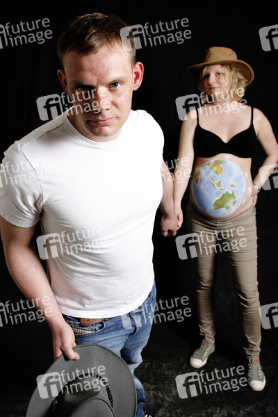 Bodypainting, Erotik, Frau, Mann, fast nackt, drinnen, weiblich, männlich, Körperkunst, Kunst, Malerei, Paar, schwanger, Bauch, erotic, woman, man, nude, indoor, female, body art, body painting, pregnant, couple