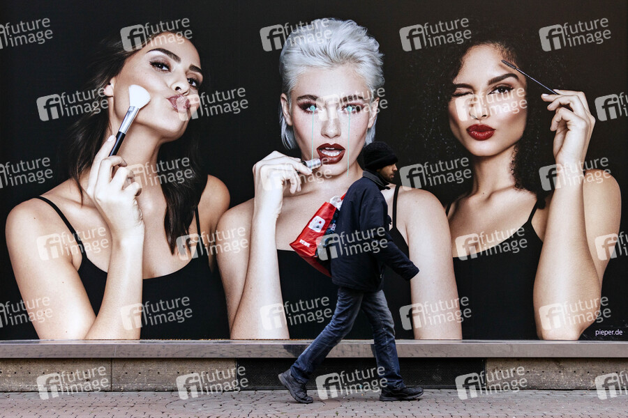 Schminke, schminken, Parfum, Parfüm, Parfumerie, Parfümerie, Makeup, Make-Up, Pflege, Düfte, Visagistin, Kosmetik, Schönheit, Stylen, Styling, Frisur, Beauty, Lidschatten, Lippenstift, Puder, Haarspray, Kosmetikbranche, Außenwerbung, Werbung, Look, Fashiong, Mode, Gesellschaft, Kosmetikindustrie, Cosmetics, Symbolbild, Symbolfoto