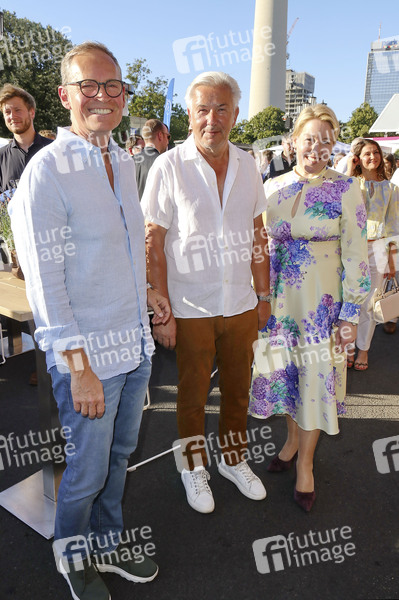 Michael Müller, Klaus Wowereit und Franziska Giffey beim 23. Berliner Hoffest 2025 am Roten Rathaus. Berlin, 01.07.2025
