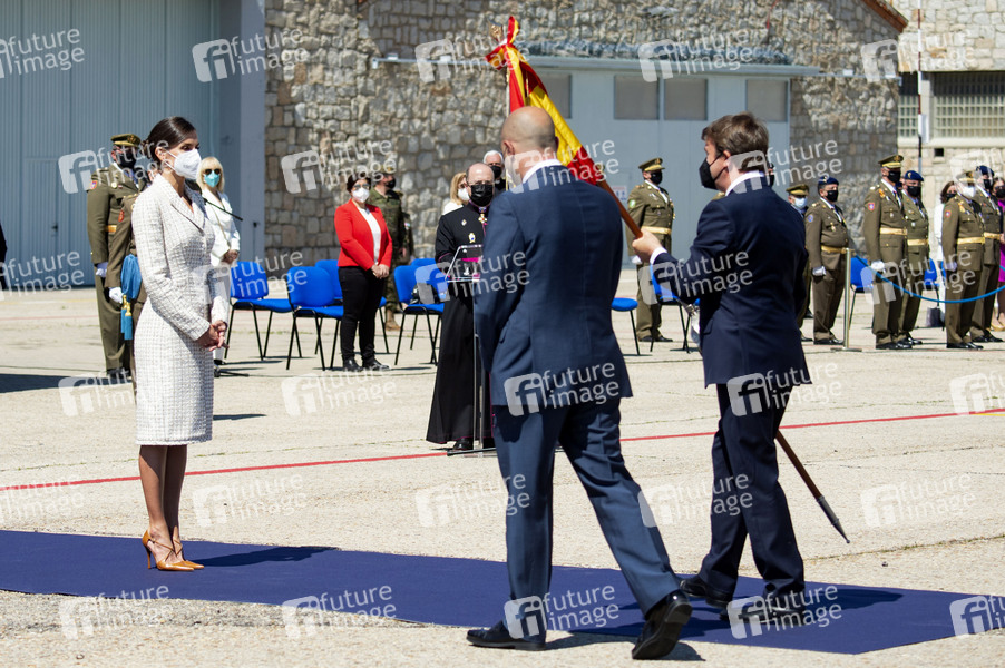 Königin Letizia von Spanien bei der Zeremonie der Übergabe der Nationalflagge an die ACAVIET (Luftfahrtakademie der Armee) in der Helipuerto Base Coronel Mate. Colmenar Viejo, 07.05.2021